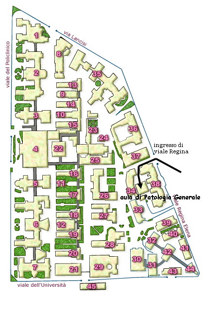 The course will be held in the General Pathology Auditorium of the Policlinico Umberto I °