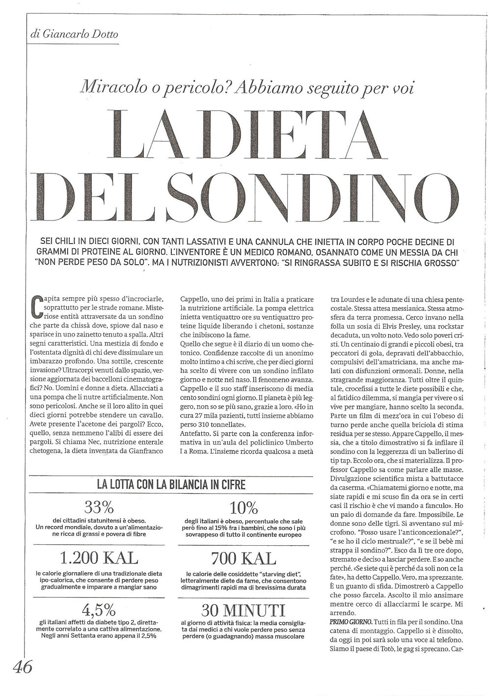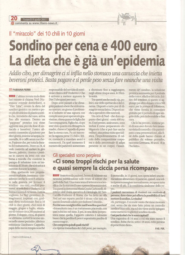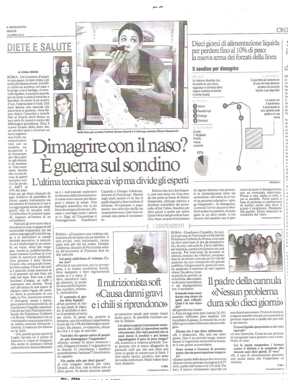 Avete mai sentito parlare del sondino naso-gastrico del Prof. Cappello per dimagrire?