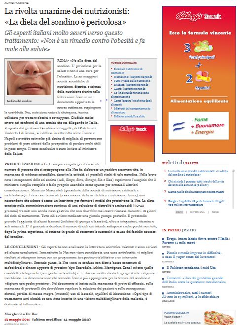 Sole24ore Salute&Benessere, 3 Ottobre 2013